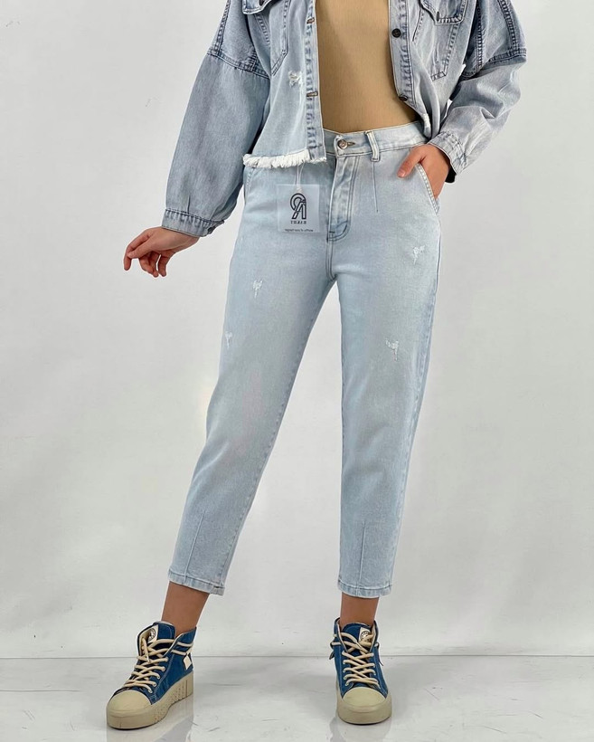 شلوار مام پارچه فول کشی رنگ آبی یخی